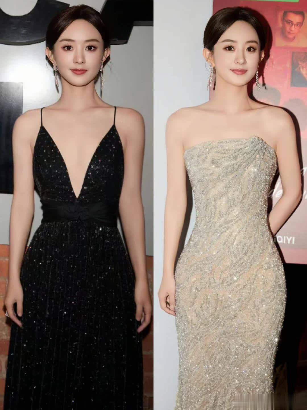 赵丽颖一袭黑色丝绒长裙还美上热搜,直角肩和天鹅颈杀疯了。